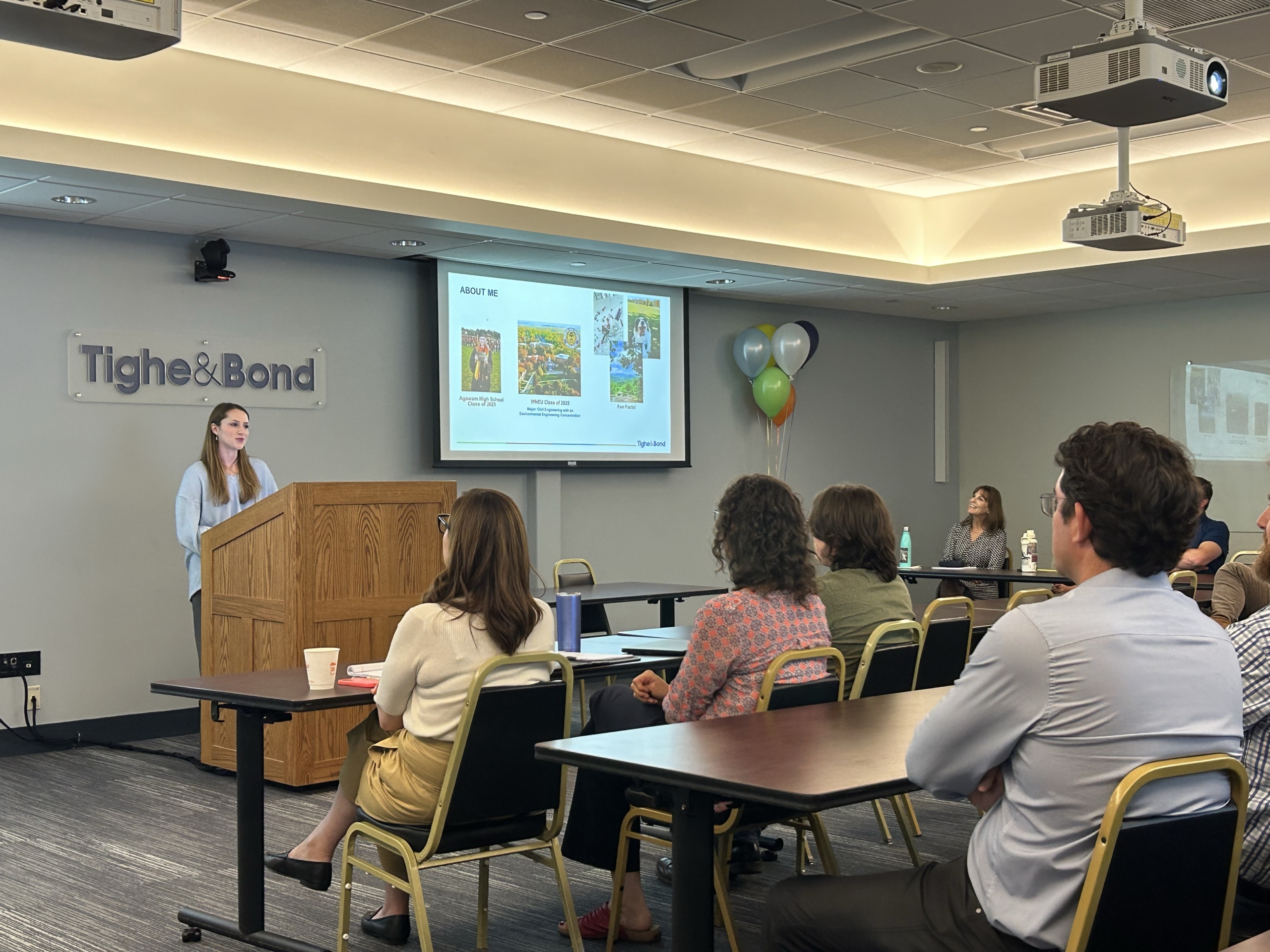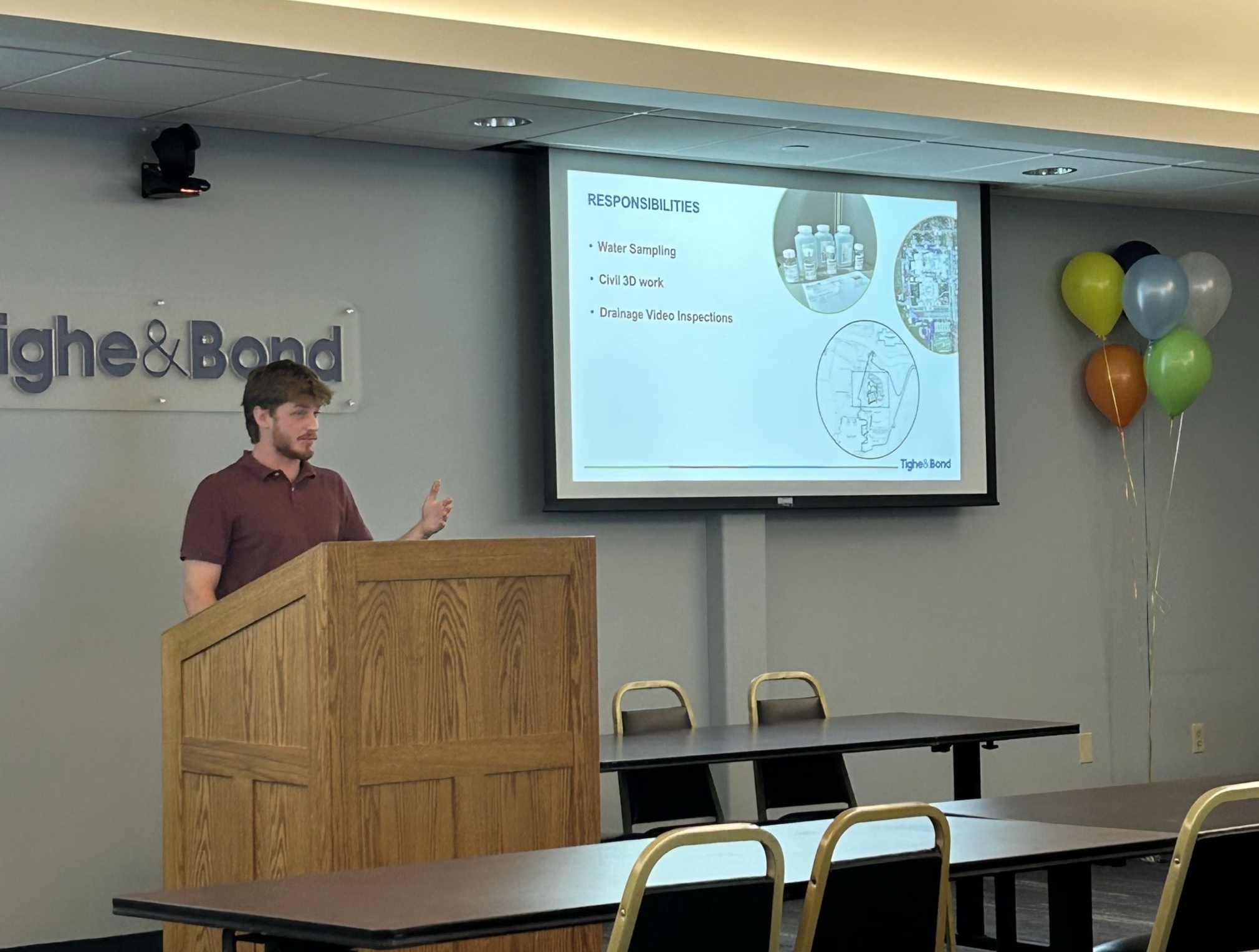 - “Interning with Tighe & Bond has been an incredible experience. The opportunity to network, learn, and collaborate with individuals who are equally passionate about this field is both remarkable and unique. Intern Day was particularly special, celebrating the contributions of all the interns, and providing an enriching experience to connect with fellow interns and professionals. As an intern, I’ve had the chance to feel like a valued member of Tighe & Bond, contributing meaningfully to projects and gaining insights that will undoubtedly benefit my future career!” – Rebekkah Clauson, Environment Intern