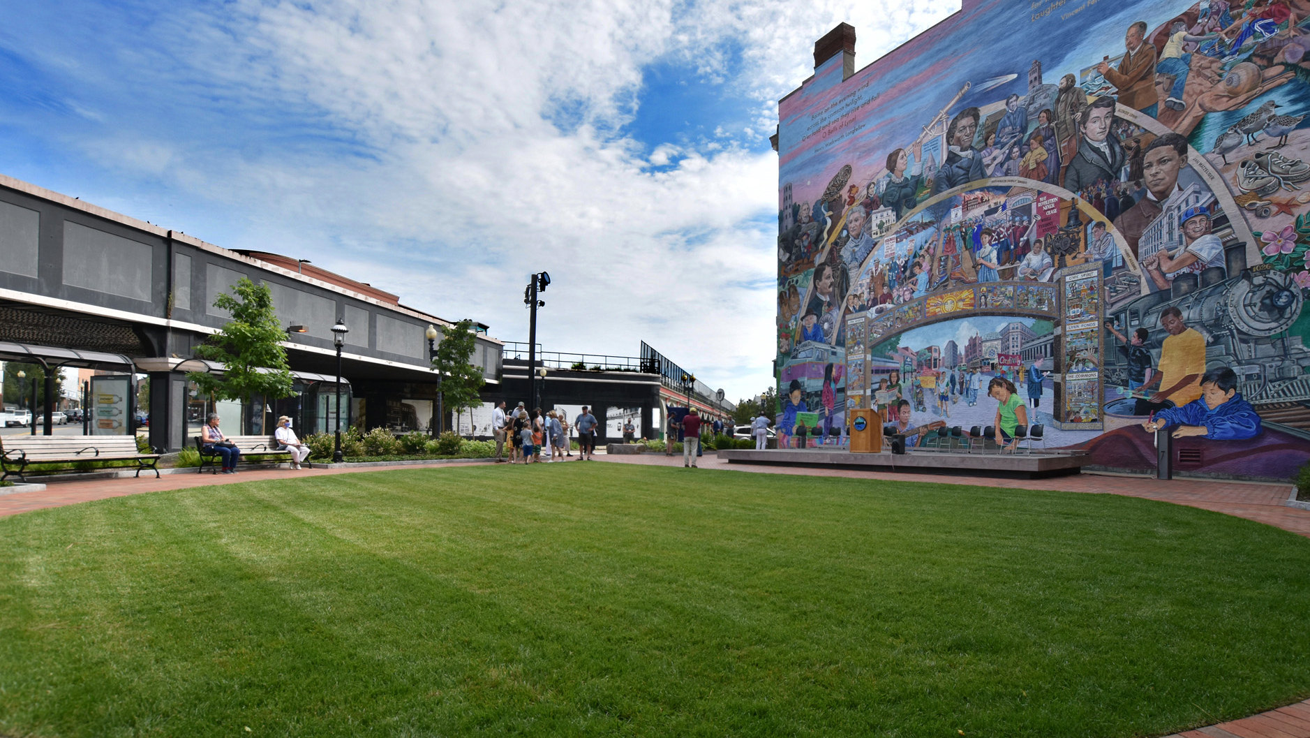 Frederick Douglass Park transformed a once-vacant lot into a welcoming pocket park for performances and rest in the heart of Lynn’s thriving arts district, which included a towering “Stories of Lynn” mural that quickly became the project muse, said Vesna Maneva.
