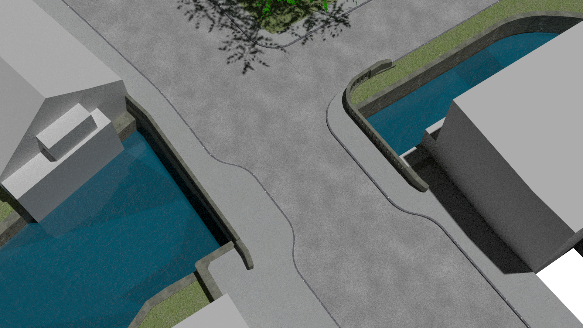 - Rendering of the replacement bridge. The tide gate will be removed, and upgraded guardrail installed.