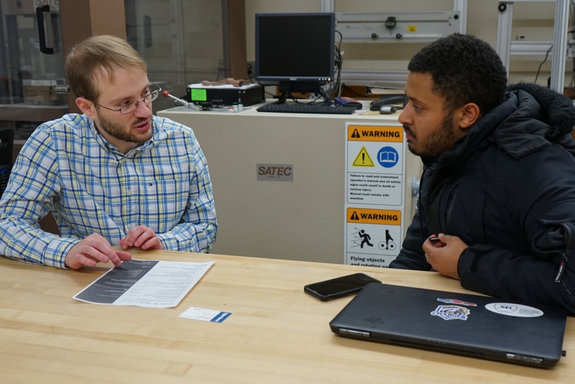 - Thomas Wamser reviews a student’s resume at the University of New Haven.