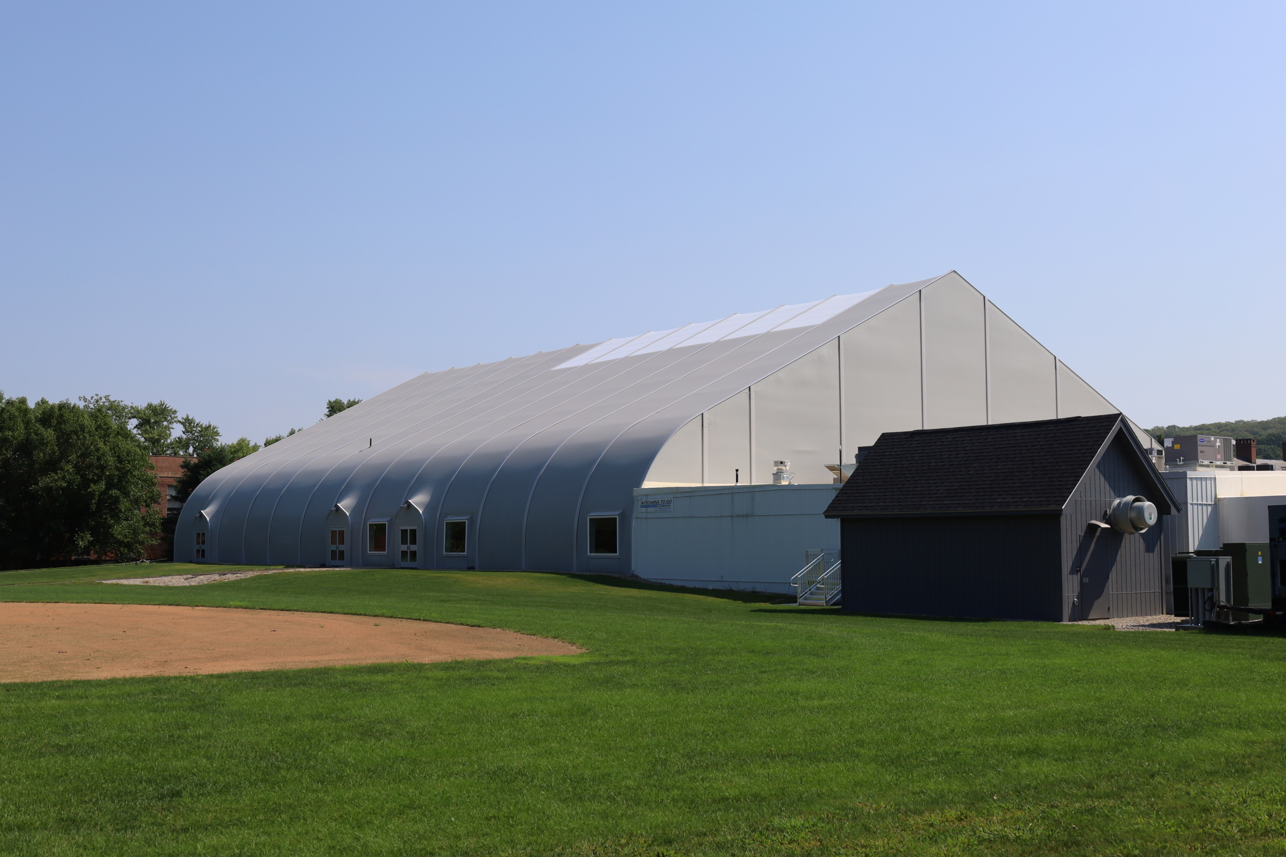 - Exterior view of Deerfield’s temporary dining hall.