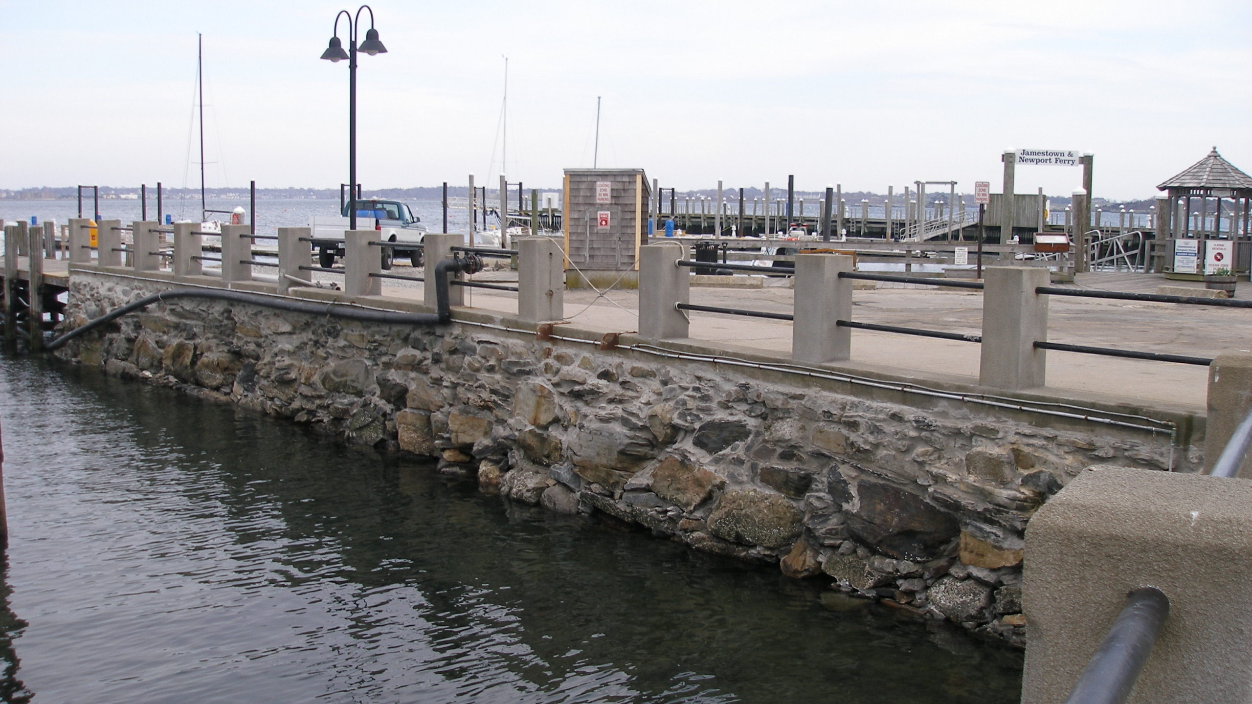 Our firm was retained by the Town of Jamestown to prepare an Alternatives Evaluation Report for stabilizing about 100 linear feet of an existing rubble stone seawall. The selected alternative included re-pointing the upper portion of the wall and using a combination of chinking and fast-setting underwater Speed Crete on the lower portion of the wall.