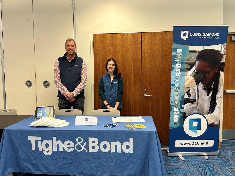 Sam Swartwout, GISP and April Locke, PE, participated in the Green Careers Exploration Fair at Quinsigamond Community College in Worcester, MA, where they shared their career paths and expertise related to Geographic Information Systems (GIS) and drinking water treatment and distribution projects.